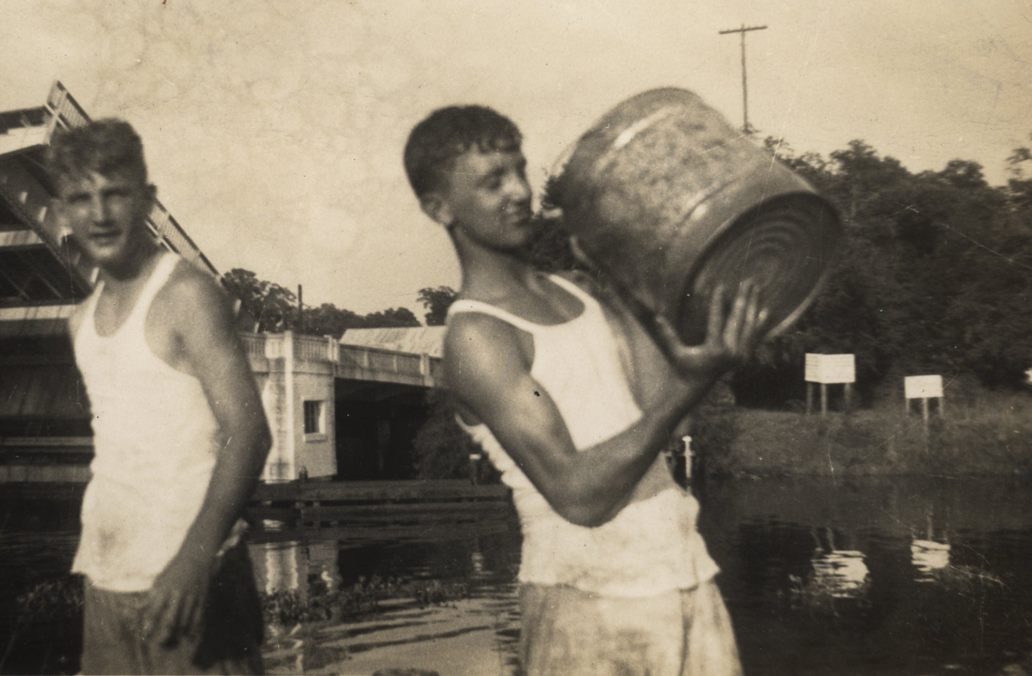 In 1943, our founder, at just 16 years old, dreamed up a shrimp-peeling machine while working a summer job at his father's seafood-packing plant in Houma, Louisiana. (That's him carrying the barrel.)